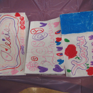 We learned how to write our name in cursive! The students were proud of the achievement yesterday. We showed off our new skill on bags for Valentine's Day. The students will use these bags on the 14th to store the valentines and treats they may receive from friends.
