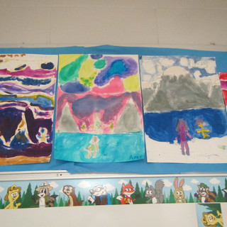 Last week we read the book "A Promise is a Promise" by Robert Munsch and Michael Kusugak. The story introduces us to the Quallupilluq "an imaginary Inuit creature, somewhat like a troll, that lives in Hudson Bay" (Munsch). The students did a watercolor image inspired by the story and in the style of Ted Harrison.