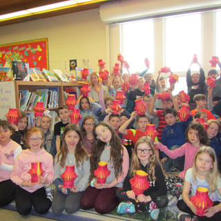 Today we learned about Chinese New Year through books, crafts and cooking activities. We made red Chinese lanterns with a gold dragon inside. We also cooked wonton soup in the afternoon. Some students with dietary restrictions made an Asian salad.