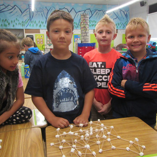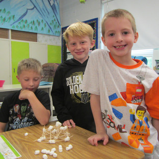 Students attempted to build a structure capable of holding a dictionary with only toothpicks and marshmallows. They had to use the triangle shape to help stabilize these week materials. Unfortunately, no structures survived the dictionary test this year (one did last year). We might have to give this another try!
